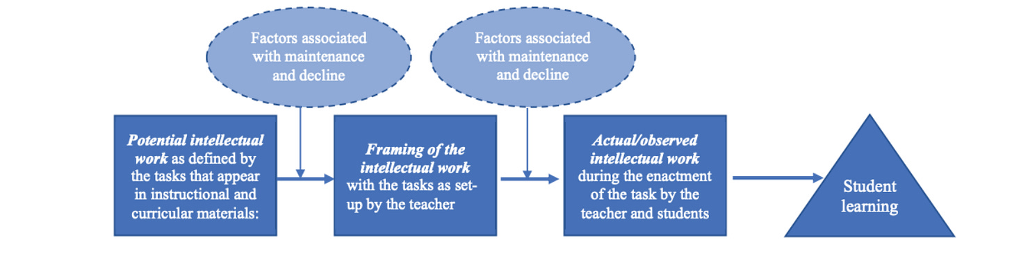 While there is no doubt that tasks with high potential cognitive demand are necessary for sustained student success, they are in no way sufficient. As this post has illustrated, a student's opportunity to learn also hinges on whether the cognitive demand of a task is maintained throughout instruction. Unfortunately, maintenance of cognitive demand continues to be difficult to achieve. Without careful attention to how tasks are launched, facilitated, and consolidated, the cognitive demand can easily be diminished, limiting the depth of student learning. Supporting teacher efficacy in this area is crucial, as it serves as a powerful leverage point in creating more equitable outcomes and greater overall student success in mathematics.